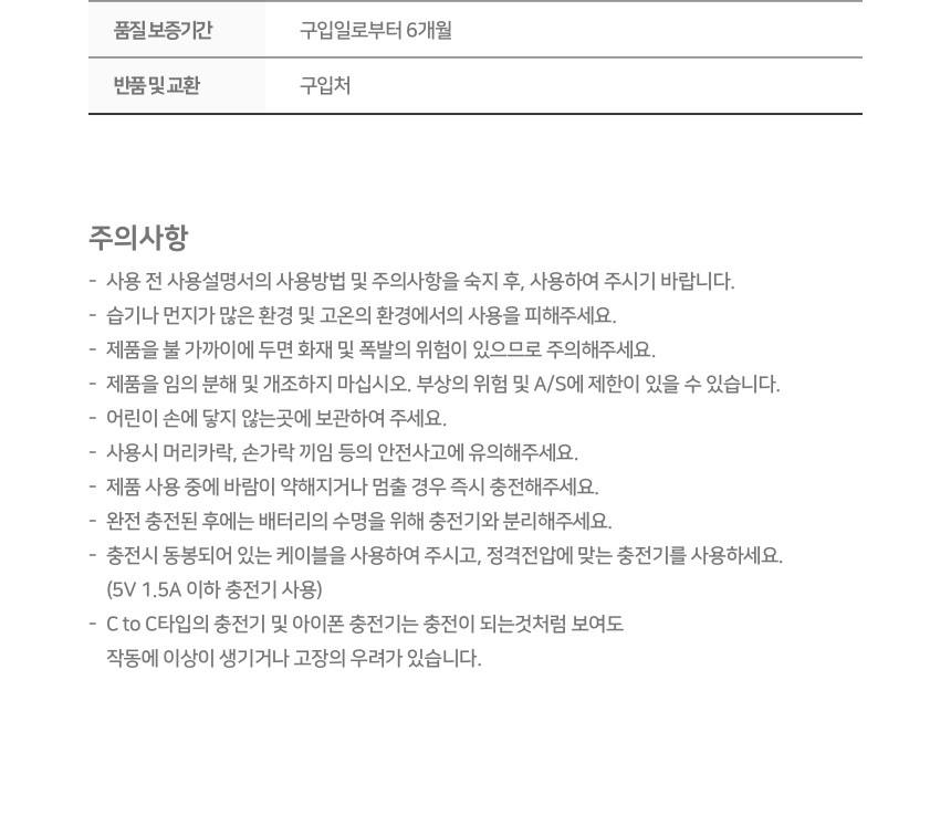 • 제품의 하자로 인한 반품 및 교환 시 배송비는 판매자가 부담합니다.