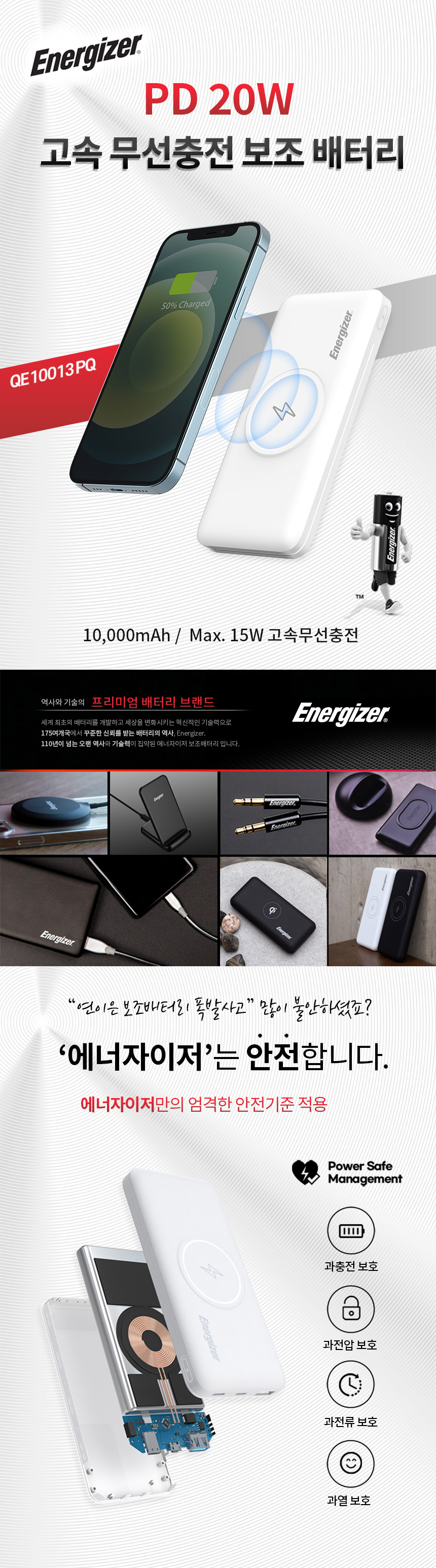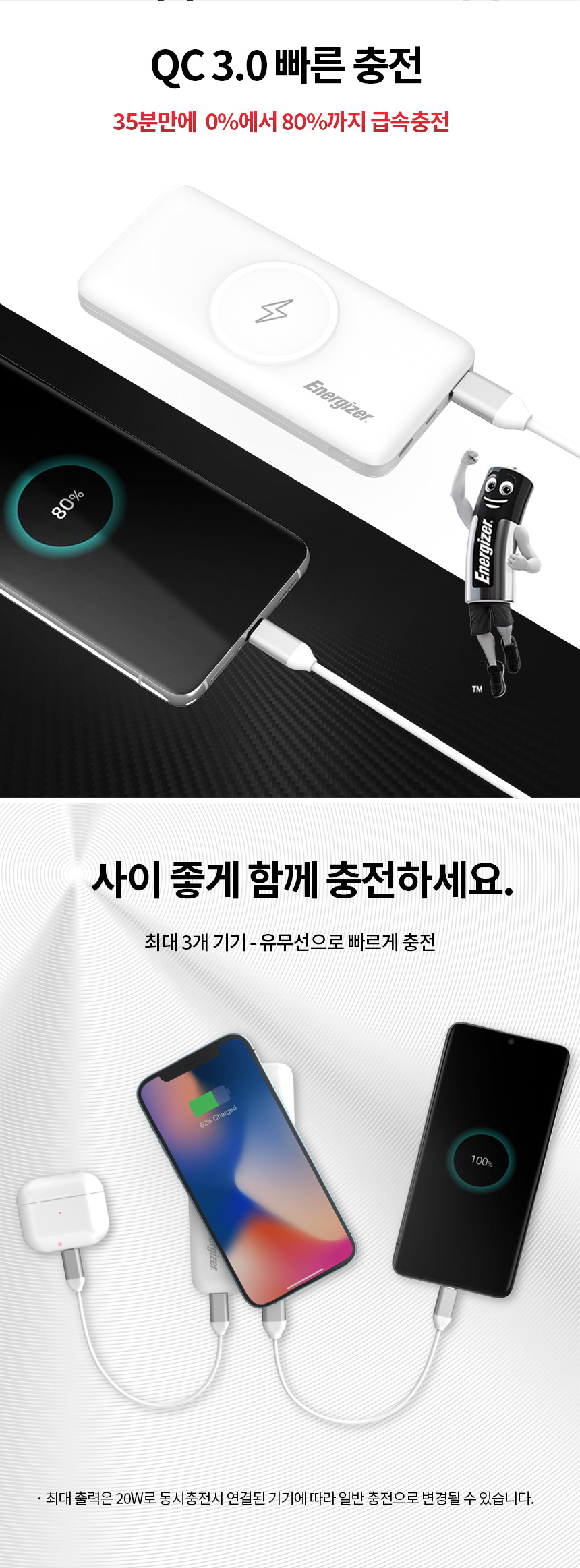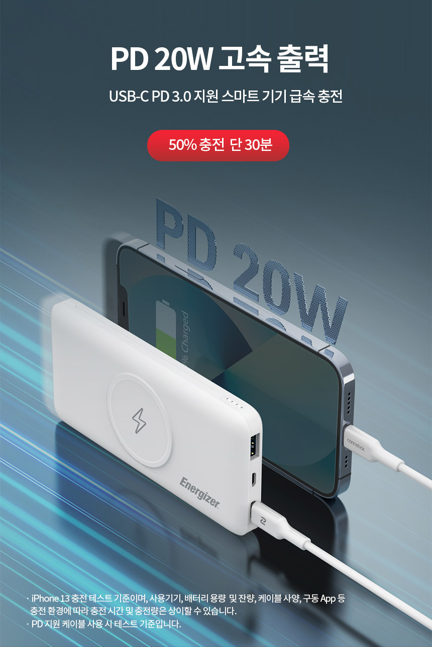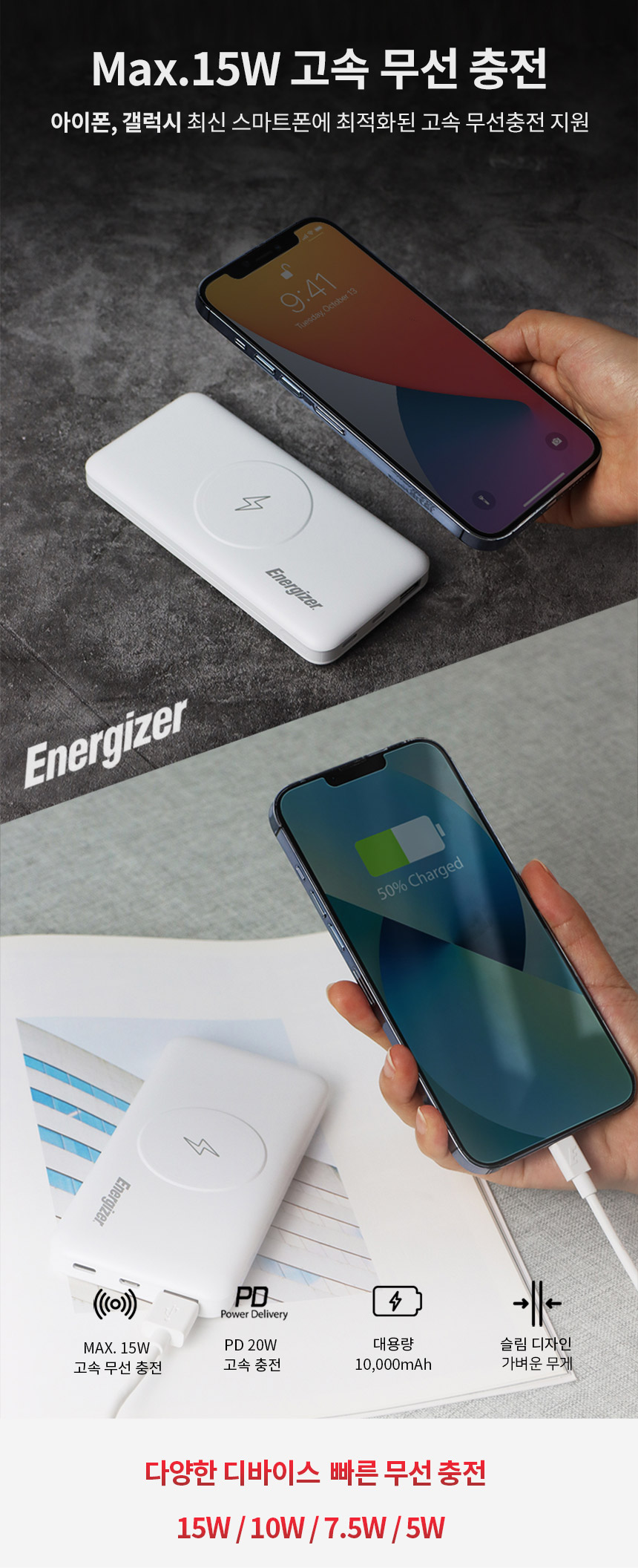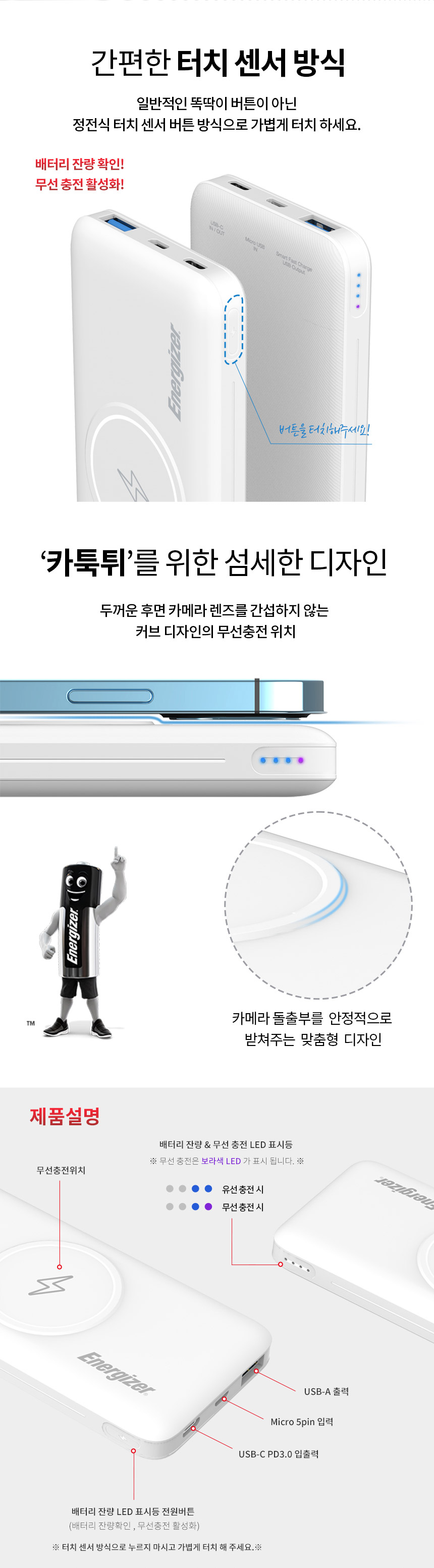 용량 5,000mAh 무선출력 15W 입력 USB-C 5V/2.4A 유선출력 USB-C 5V/3A (MAX 15W)