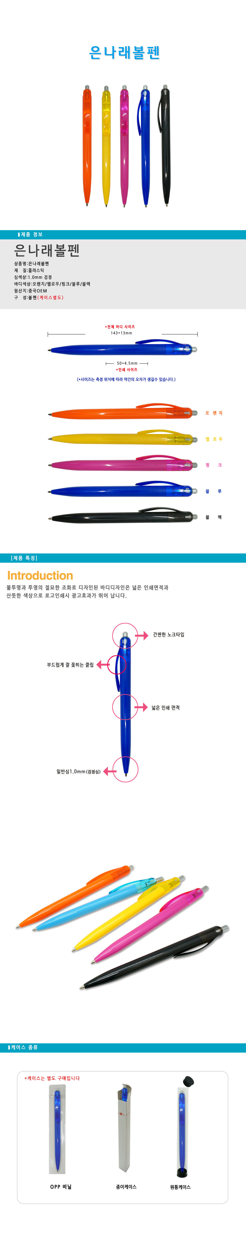 볼펜1P / 주,노,핑,하늘,검정