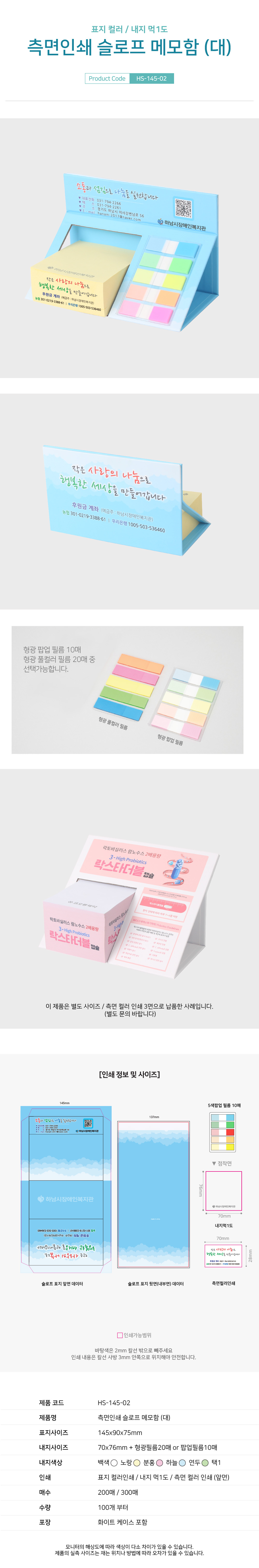 점착메모지 70x76 + 형광필름 20매 or 팝업필름 10매