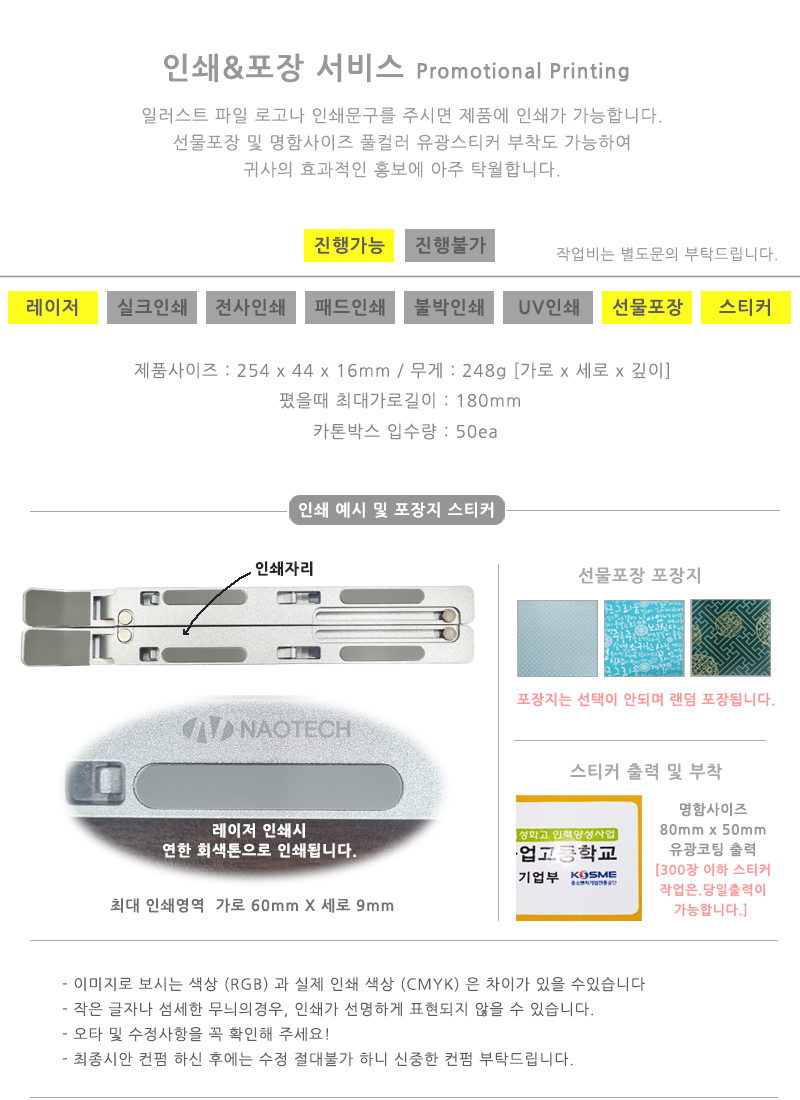254 x 44 x 16mm / 알루미늄,메탈,실리콘외