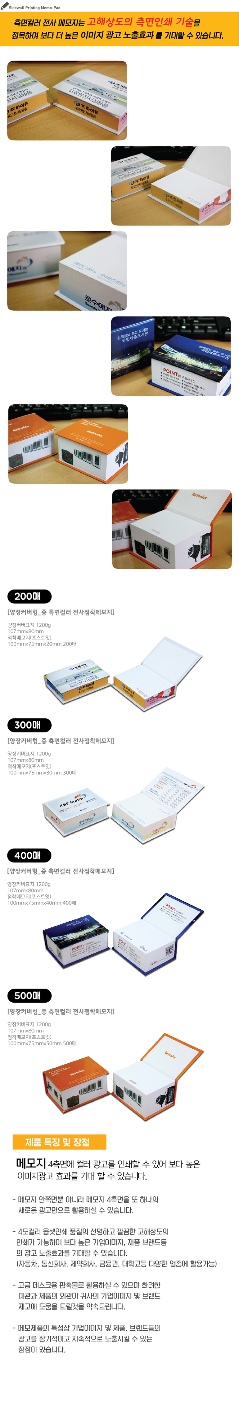 양장커버 107mm x 80mm x 30mm/포스트잇 100mm x 75m x 30mm, 300매 / 1200g하드보드지, 90g 유성점착원단(국산)