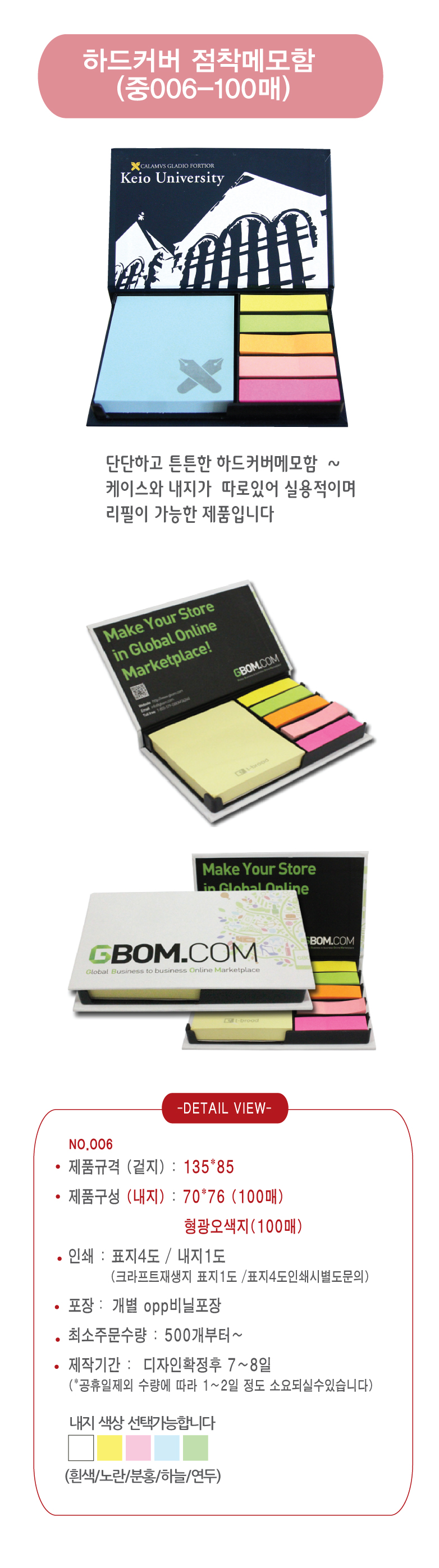 포스트잇+형광오색지 / 포스트잇내지색상: 흰색/노란/파란/연두/분홍