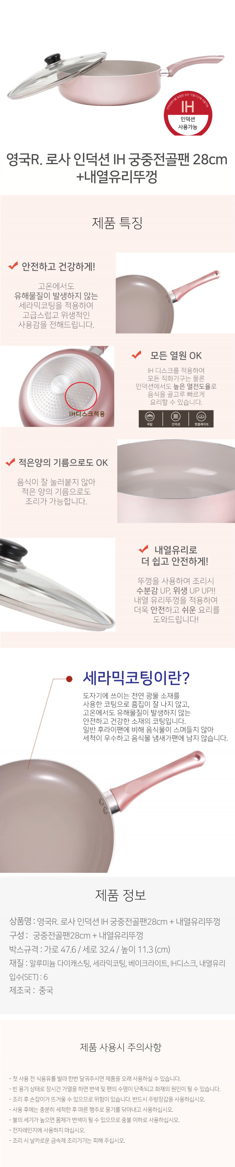 궁중전골팬28cm + 내열유리뚜껑