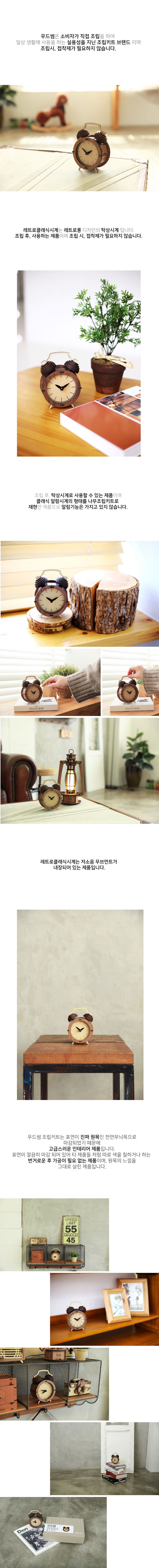 레트로풍 디자인의 탁상시계인 레트로 클래식 시계 입니다. 나무퍼즐을 조립하여 시계로 사용하는 제품입니다.