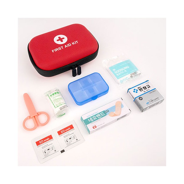 구급파우치,소형가위,알약케이스,반창고,밴드,멸균거즈,알콤솜,붕대