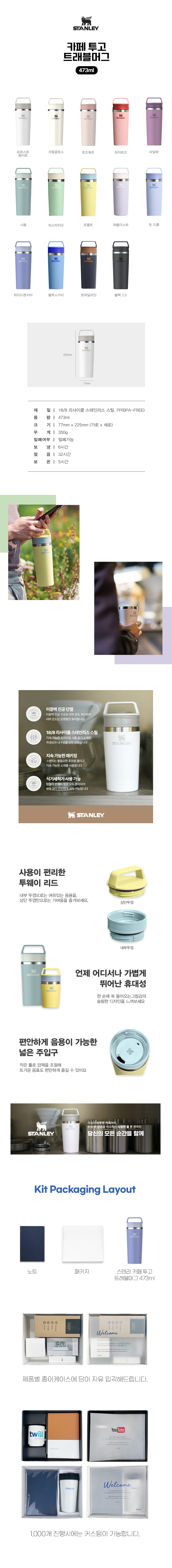 473ml / 77x77x225mm, 18.8 리사이클 스테인리스 스틸