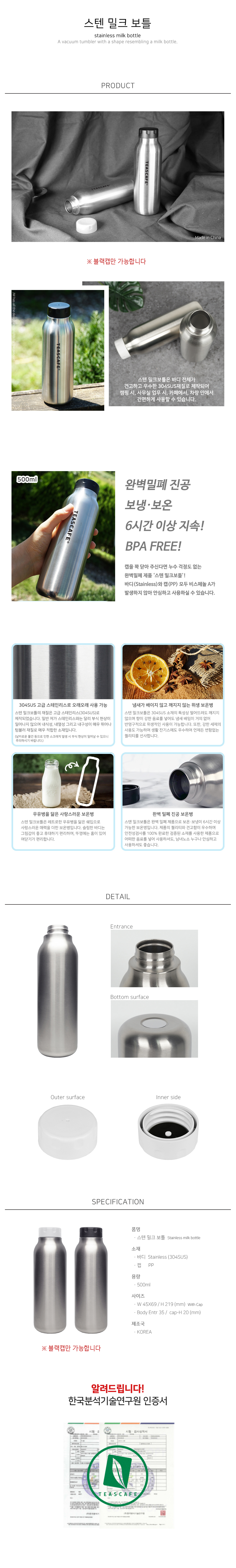 윗지름 35, 아랫지름 70, 높이 230 (mm) / 바디-스텐 / 캡-PP,고무제