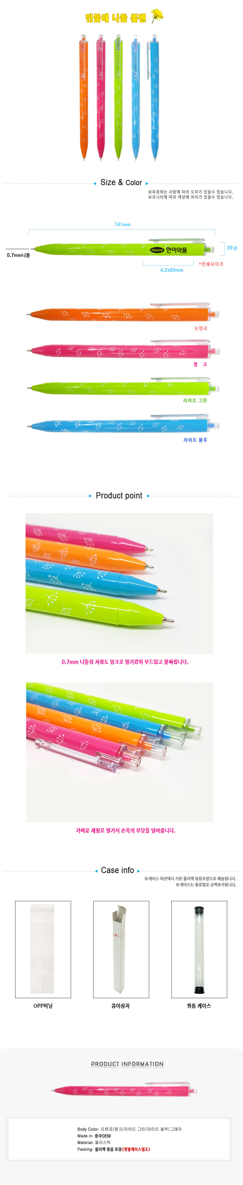 볼펜1P / 오렌지/핑크/라이트그린/라이트블루