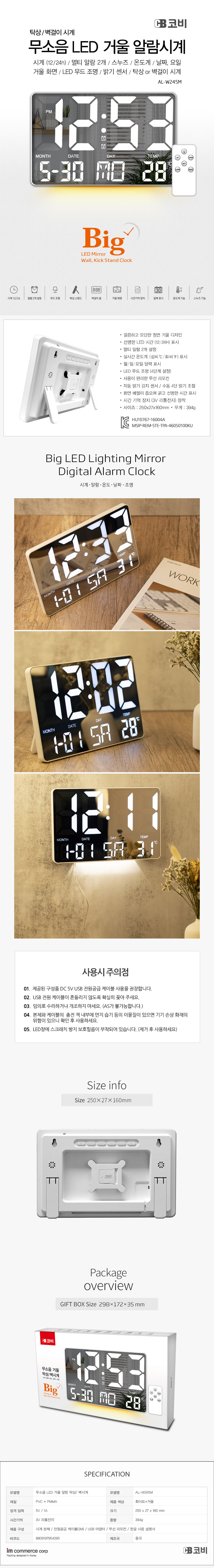 250x27x160mm, 394g, 리모컨 포함
