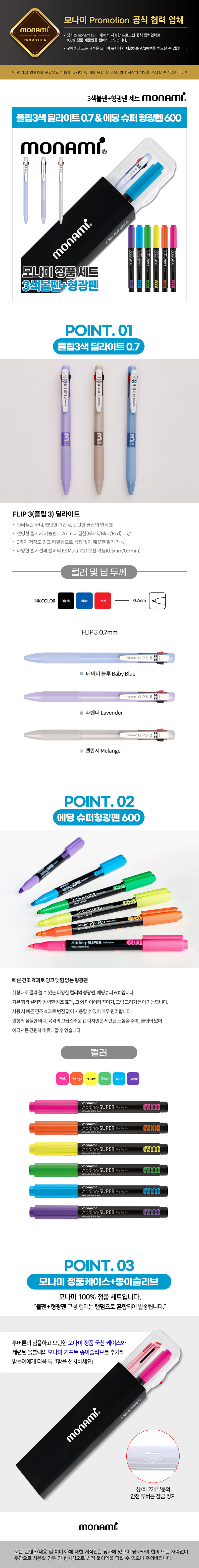 모나미플립3색딜라이트(0.7)+에딩슈퍼형광펜600