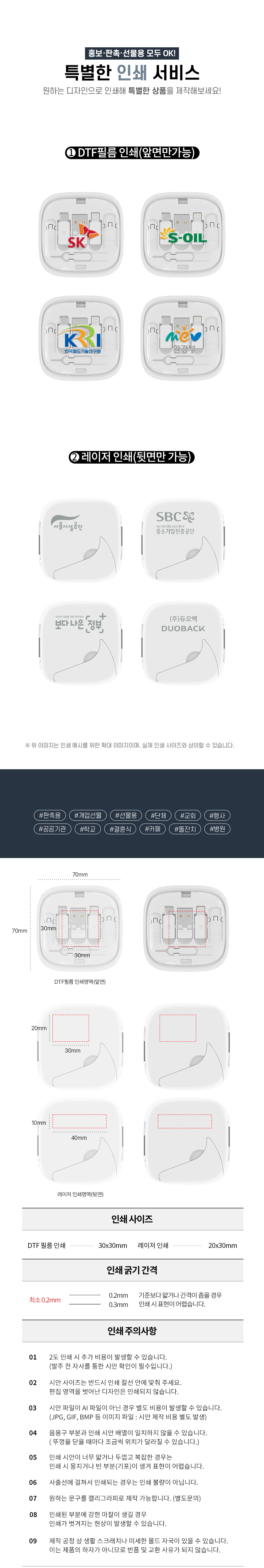 실크인쇄 / 컬러인쇄 / 레이저인쇄 / 박인쇄 / 자수인쇄 / 에폭시인쇄