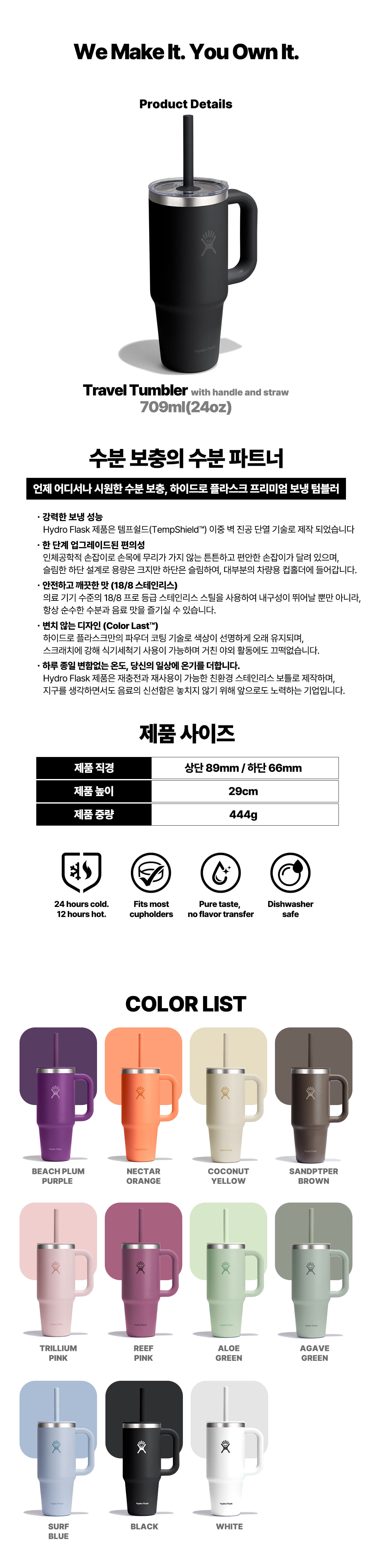- 하이드로 플라스크 로고가 없는 반대쪽 면에만 각인이 가능합니다.