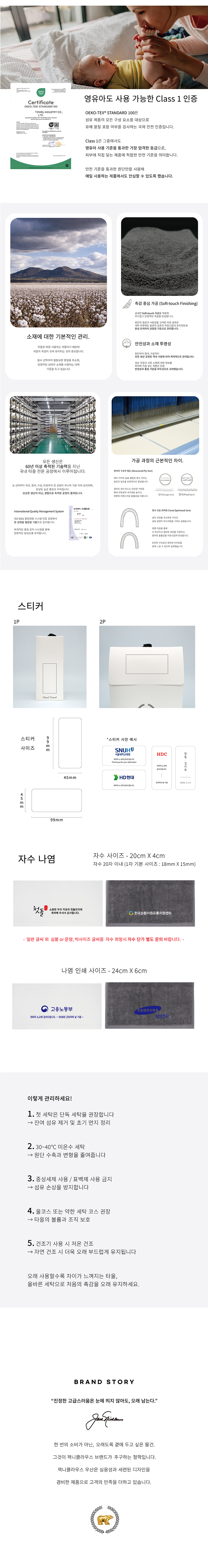 잭니클라우스 호텔수건 160g + 종이케이스 포함