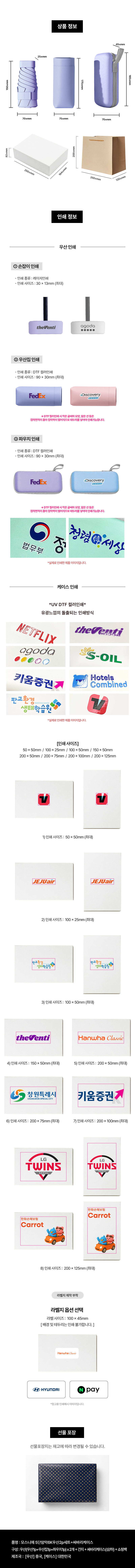 실크인쇄 / 컬러인쇄 / 레이저인쇄 / 박인쇄 / 자수인쇄 / 에폭시인쇄