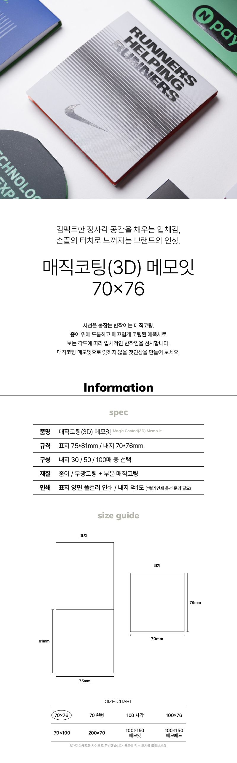 커버 아트지, 내지 점착메모지