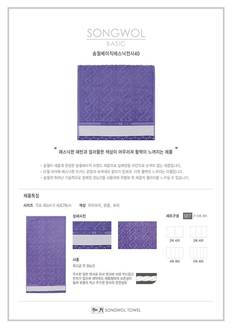 40*78cm , 140g / 최고급 30수 면 100%