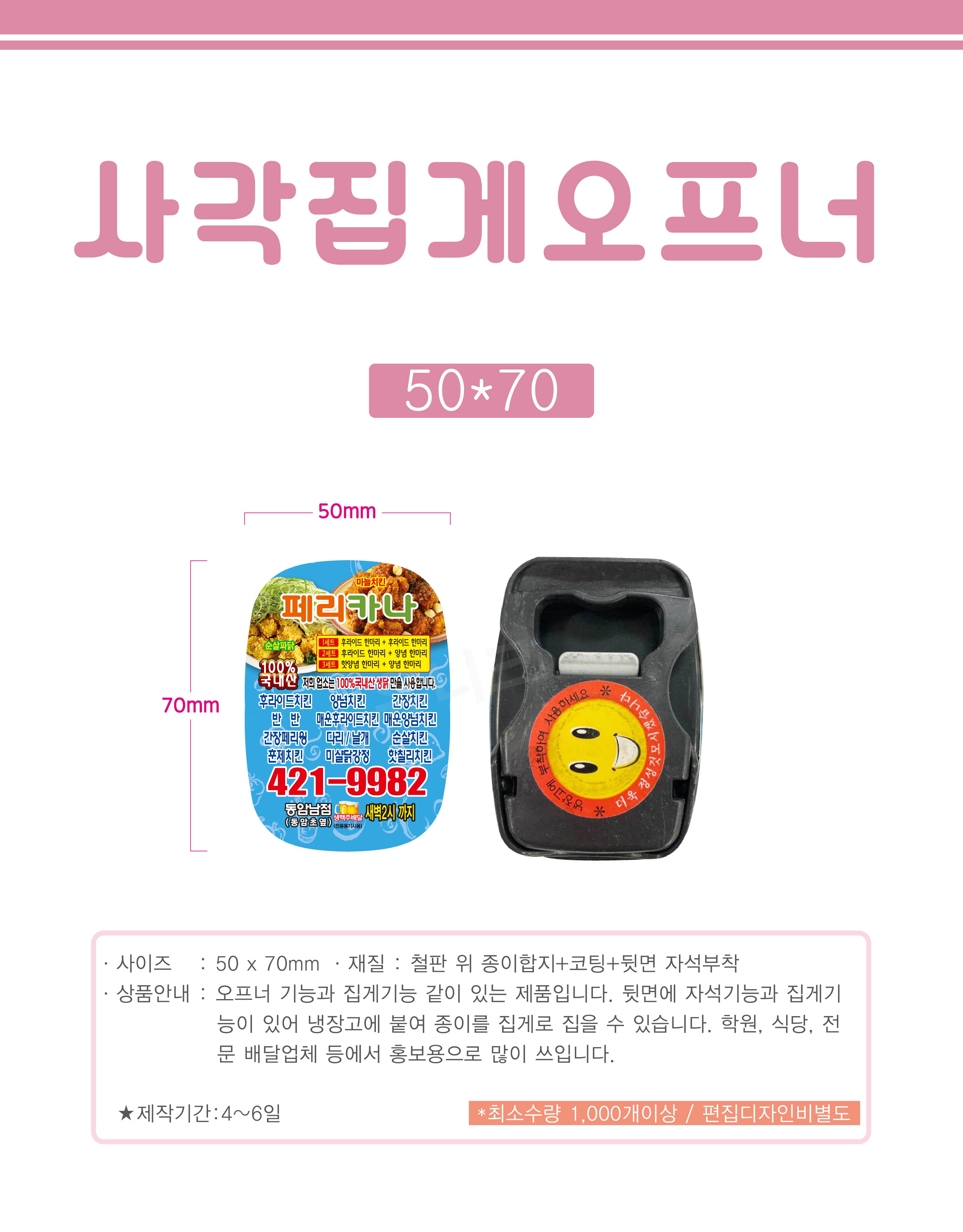 50 *70mm / 철판 위 종이합지 +코팅+ 뒷면 자석부착