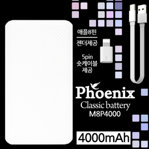 피닉스 클래식 보조배터리 4,000mAh (5핀케이블+8핀젠더포함)