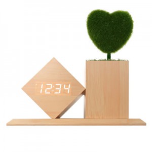 대나무 무소음 LED 알람시계 가로형