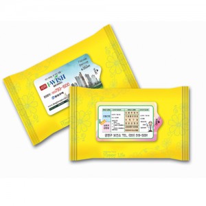 판촉용 노랑 물티슈 5매