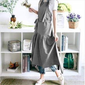 파스텔 린넨 롱 원피스 앞치마