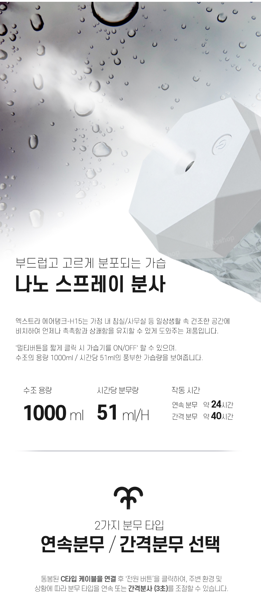 - 저소음으로 편안하게 , 간격분사로 편안하게 사용가능