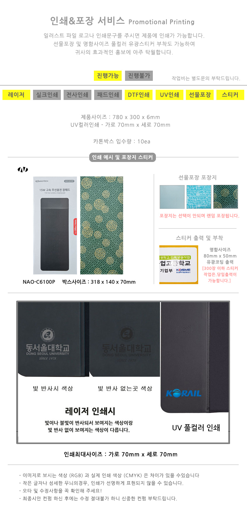 제품사이즈 : 780 x 300 x 6mm / 패드두께 : 4mm / 무게 599g