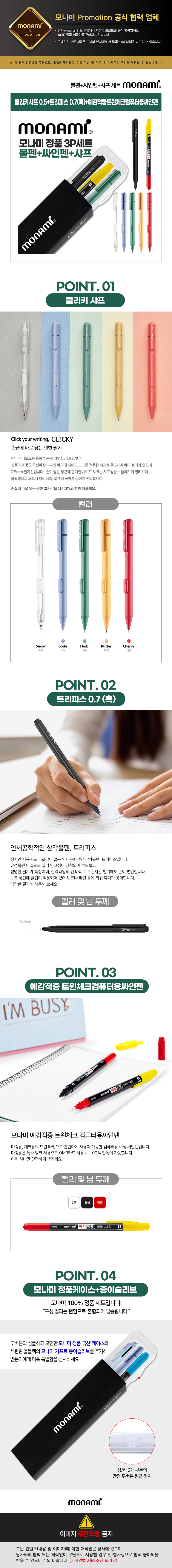 모나미 예감적중트윈체크컴퓨터용싸인펜+클리키샤프0.5+트리피스0.7(흑)