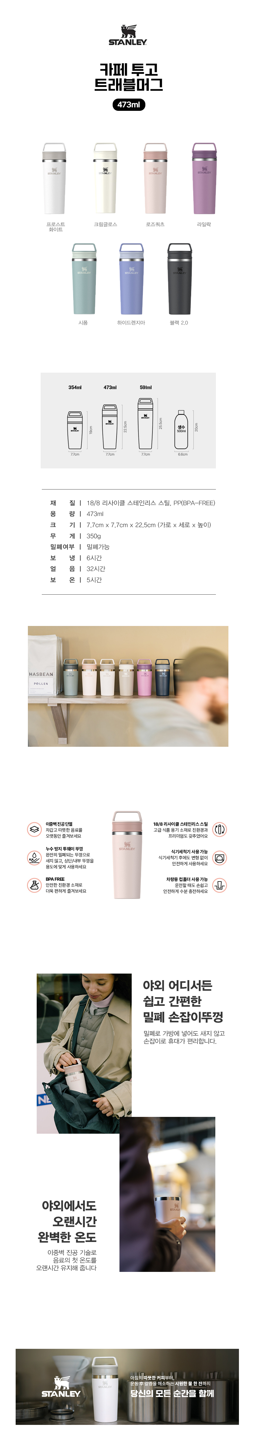 473ml / 77x77x225mm, 18.8 리사이클 스테인리스 스틸