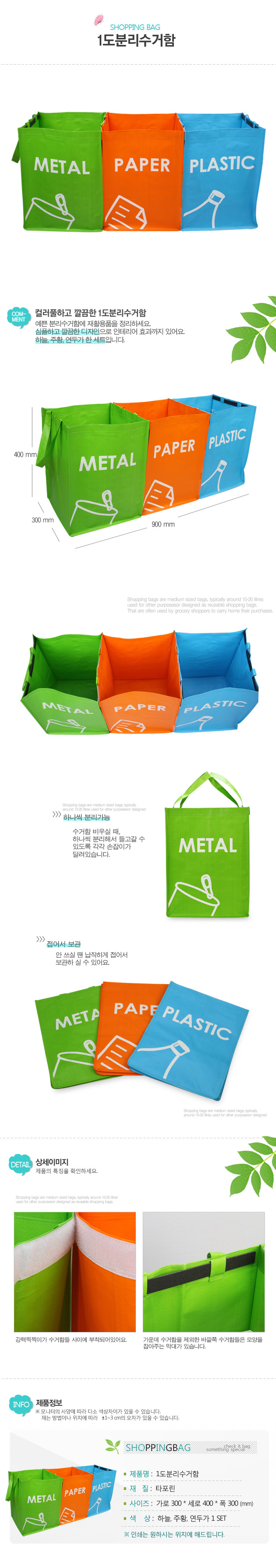 분리수거함 1set / 연두,주황,하늘(3개가 1세트)