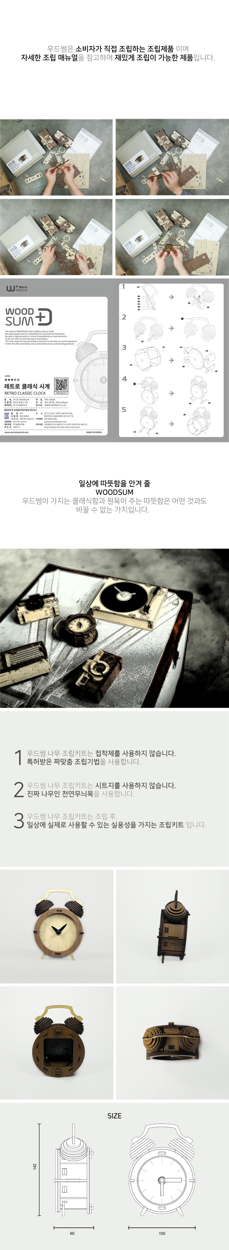 레트로풍 디자인의 탁상시계인 레트로 클래식 시계 입니다. 나무퍼즐을 조립하여 시계로 사용하는 제품입니다.