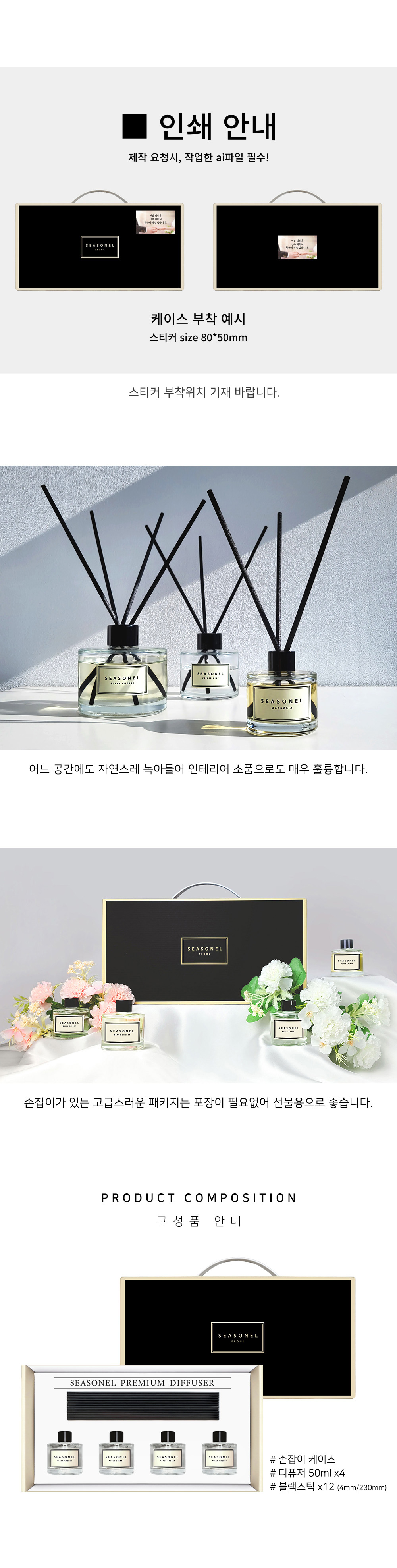 50ml 디퓨저 x4, 고급섬유 스틱 12개