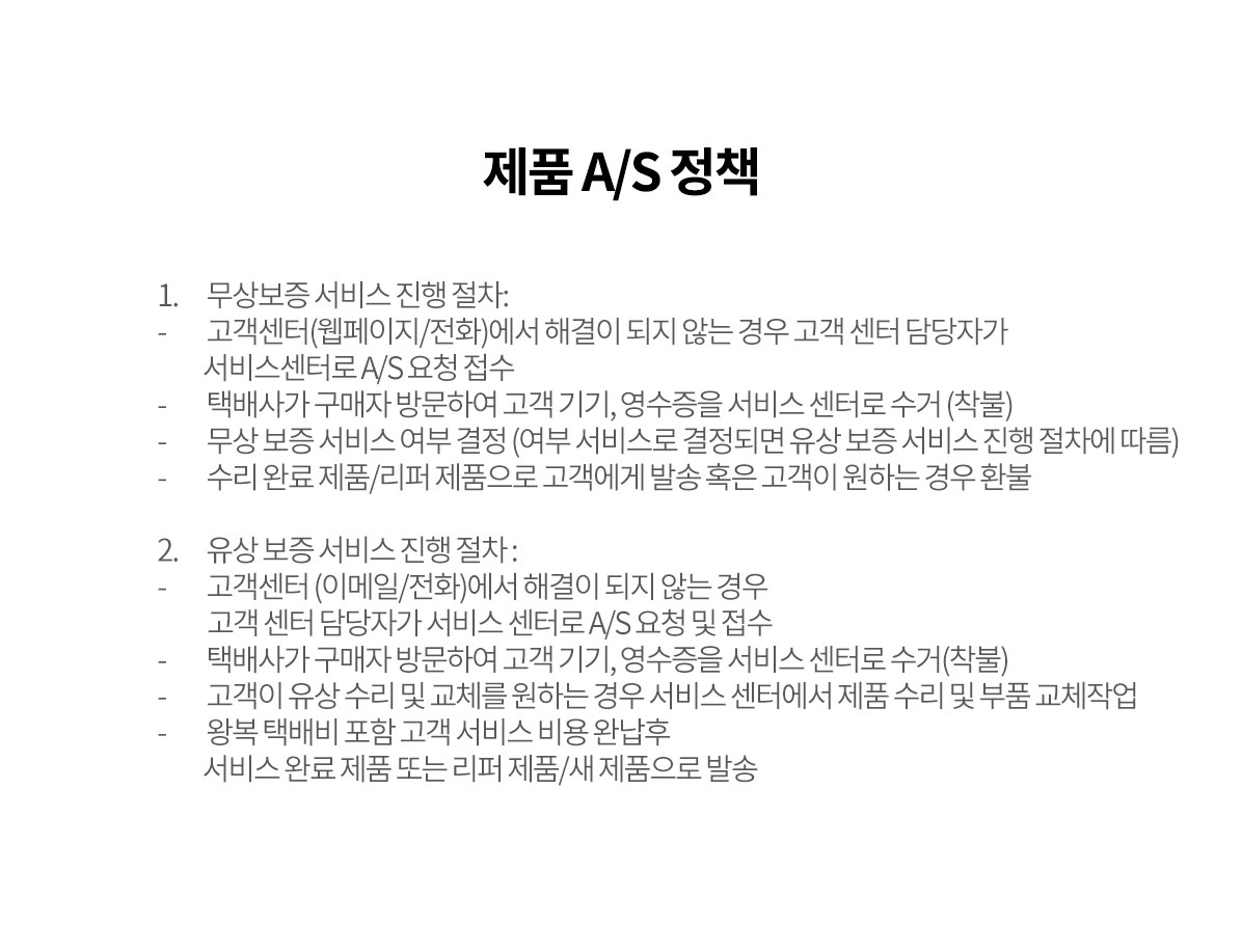 • 제품의 하자로 인한 반품 및 교환 시 배송비는 판매자가 부담합니다.