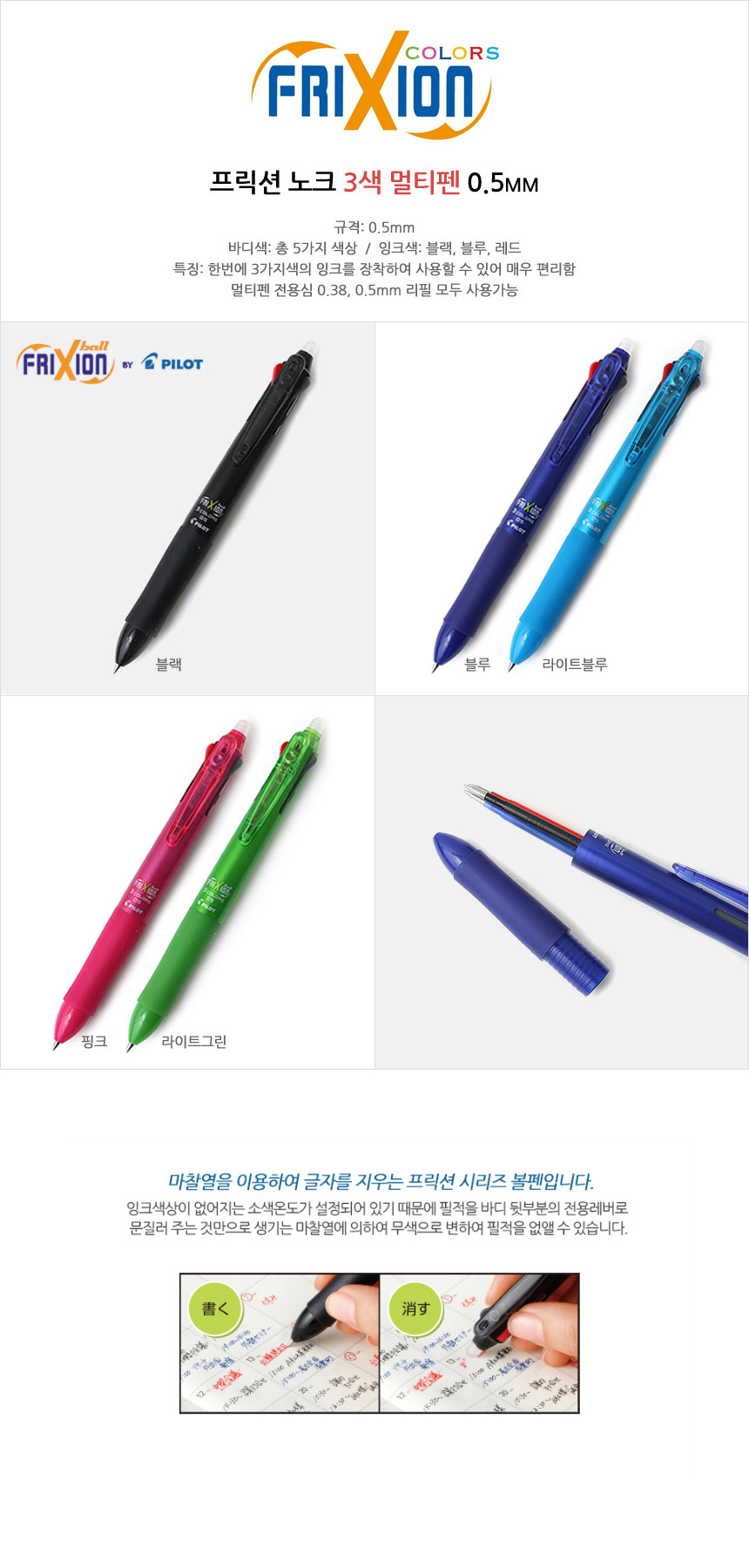 볼펜 1P / 블랙, 블루, 라이트블루, 핑크, 라이트그린