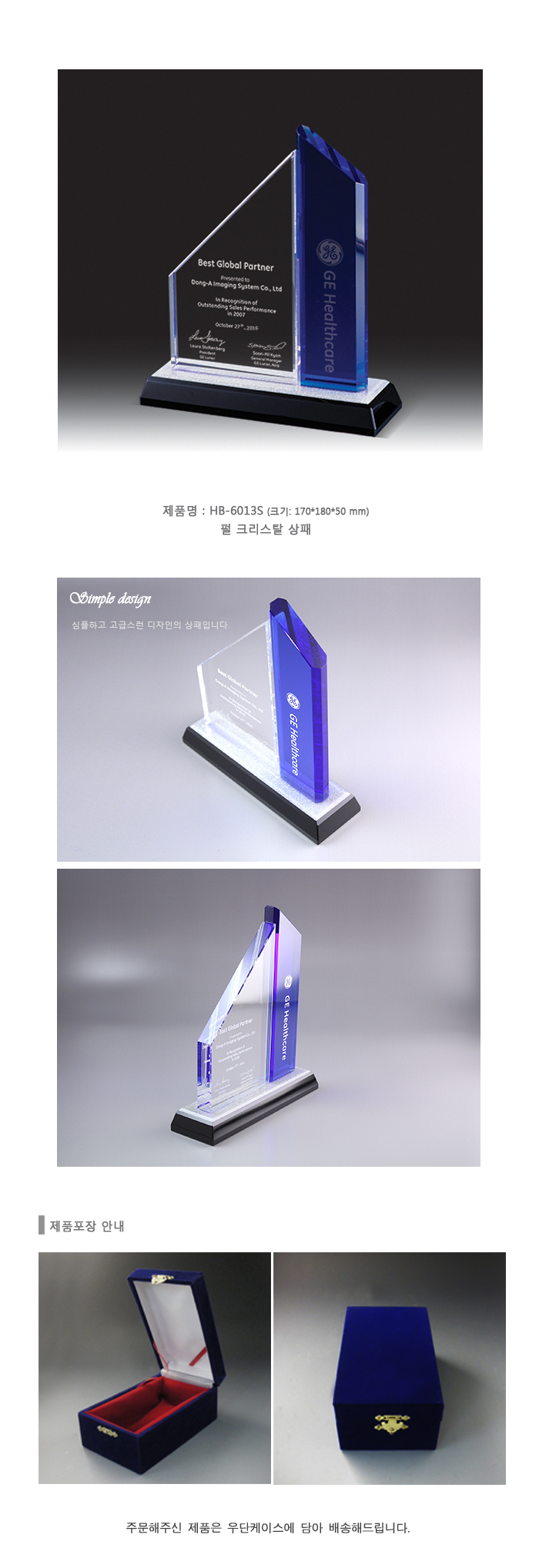 심플한 디자인의 크리스탈 상패