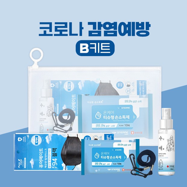 KF94마스크 1매 + 손소독티슈(10매) 1P + 손소독스프레이30ml 1P + 국내산마스크스트랩 1P