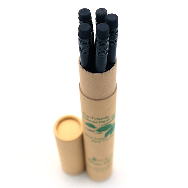 연필 5자루 + 종이 원통 케이스 / 연필/원통 : 검정/재생