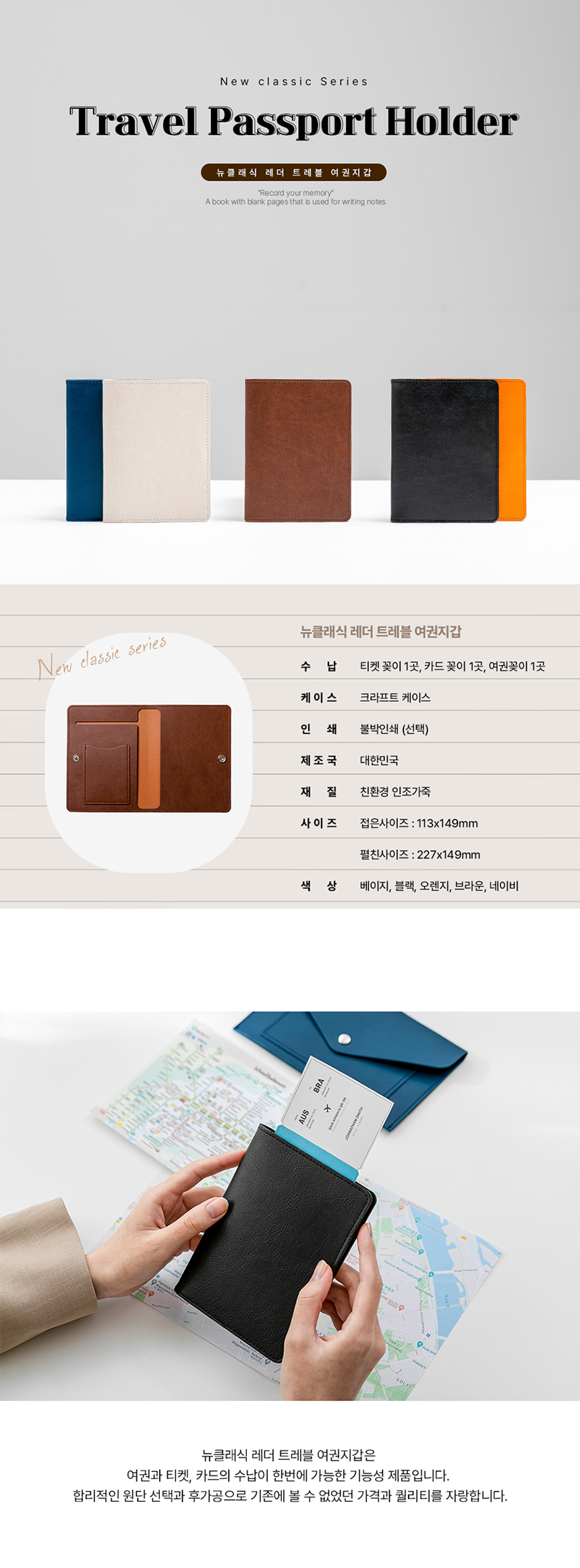 뉴클래식레더 트레블여권지갑+크라프트케이스