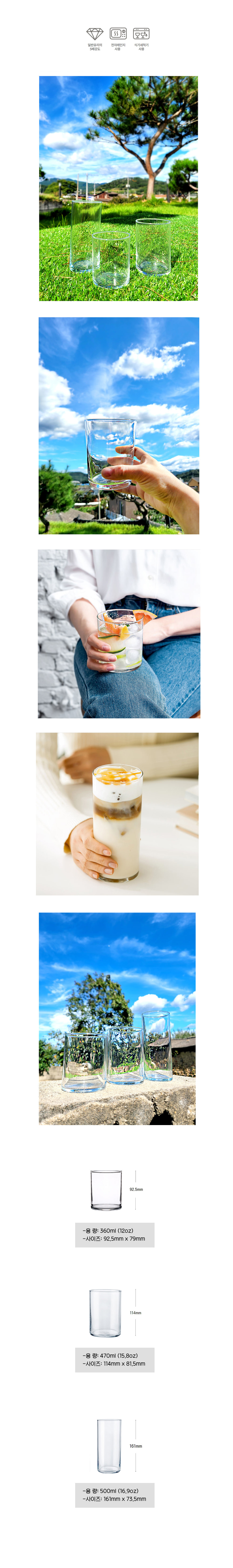 잘 깨지지 않는 특성으로 카페, 음식점 등 식음료 판매 전문 업소 또는 아이들이 있는 가정에서 사용하기가 좋은 제품입니다.