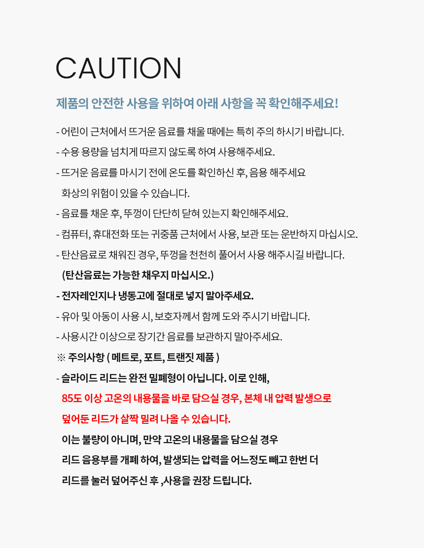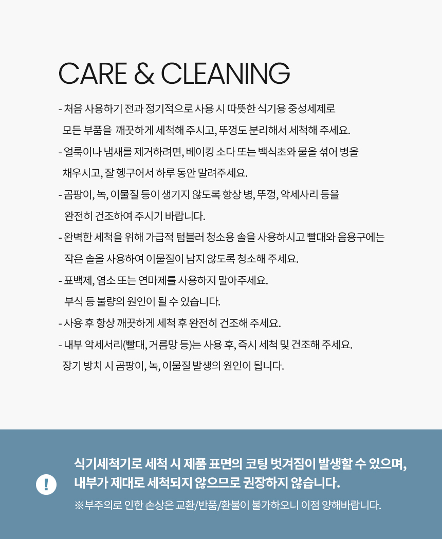 • 제품의 하자로 인한 반품 및 교환 시 배송비는 판매자가 부담합니다.