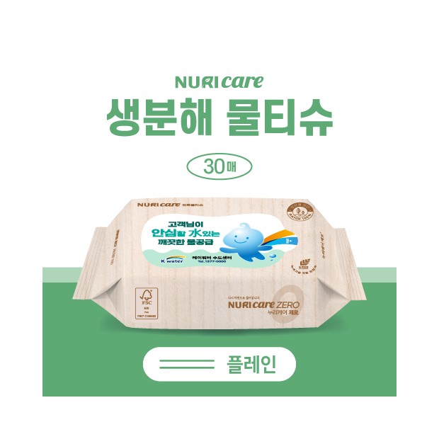 FSC인증생분해원단 생분해물티슈 30매(플레인)