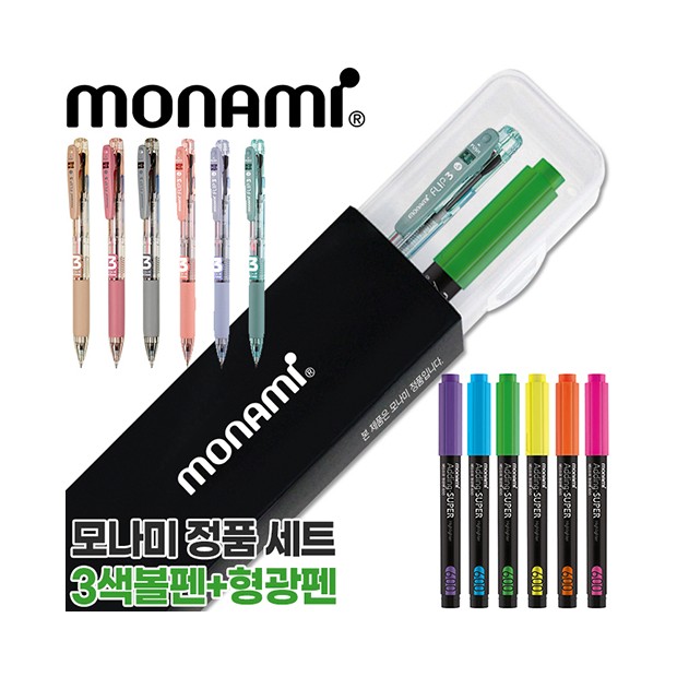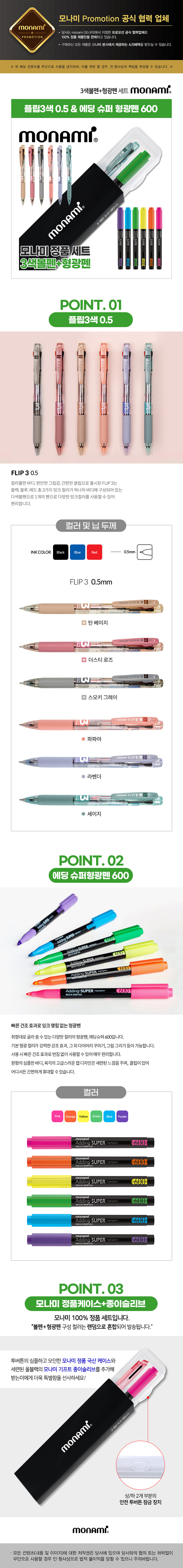 모나미플립3색(0.7)+에딩슈퍼형광펜600세트