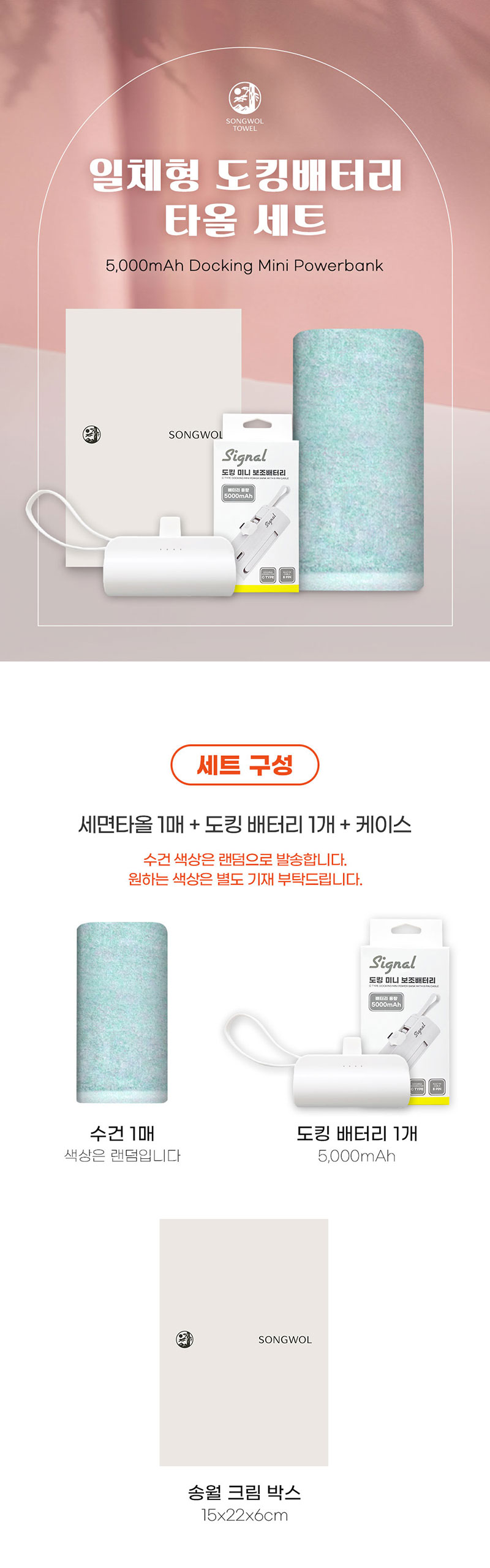 세면타올 1매 + 도킹보조배터리 + 종이케이스 구성 입니다.