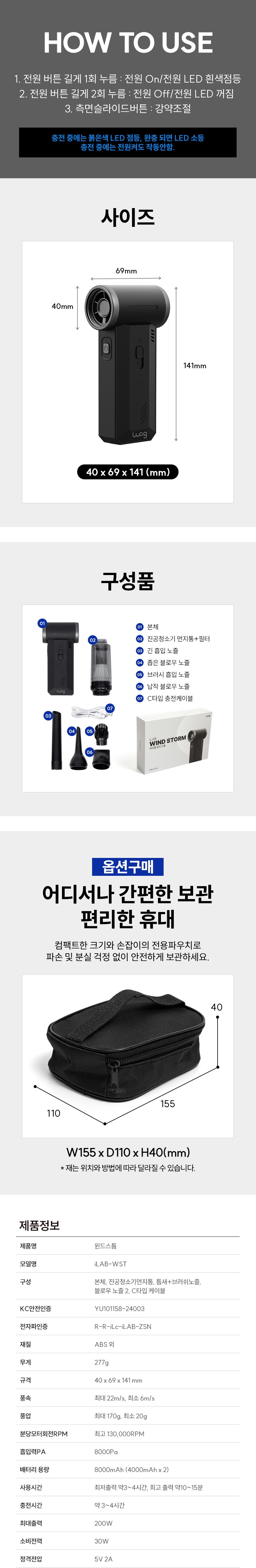 * 흡입(청소)과 송풍(블로우) 2in1 기능