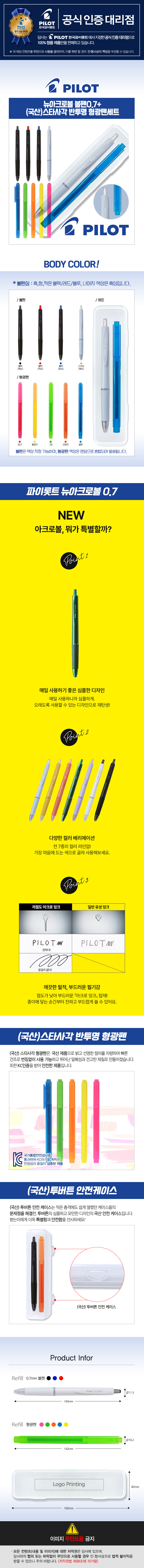 뉴아크로볼 143*11.3 / 스타사각형광펜 142*10.2 / 투버튼안전케이스 160*42