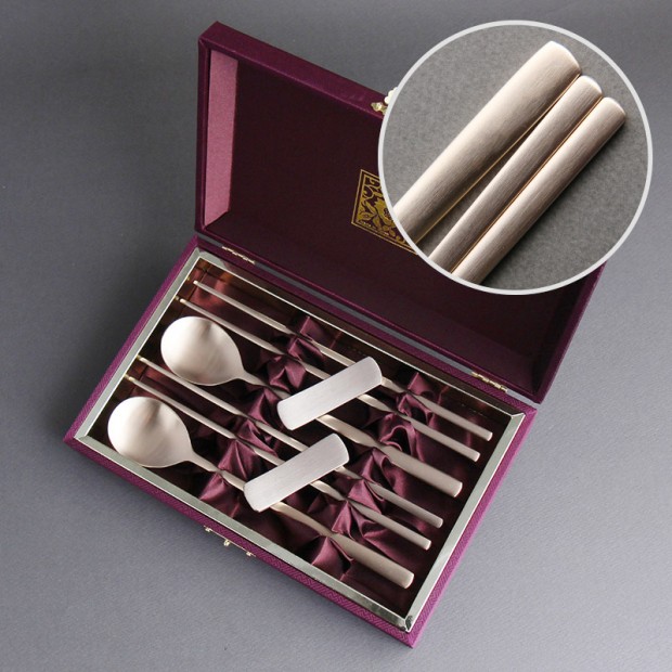 숟가락2, 젓가락2매, 수저받침2, 보증서, 실크케이스