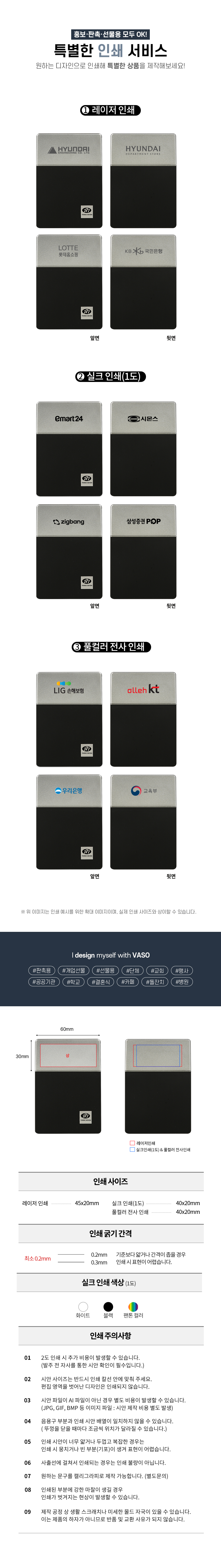 실크인쇄 / 컬러인쇄 / 레이저인쇄 / 박인쇄 / 자수인쇄 / 에폭시인쇄