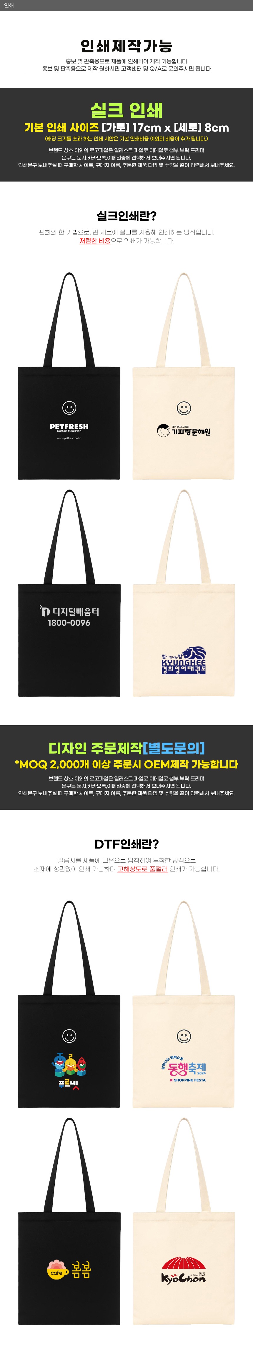 ※ 실크인쇄 기본 170x80mm 사이즈 내에서 인쇄 됩니다. / 초과 사이즈 별도 문의 바랍니다.