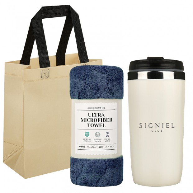 텀블러 1P + 타올 1P + 고급 부직포 쇼핑백